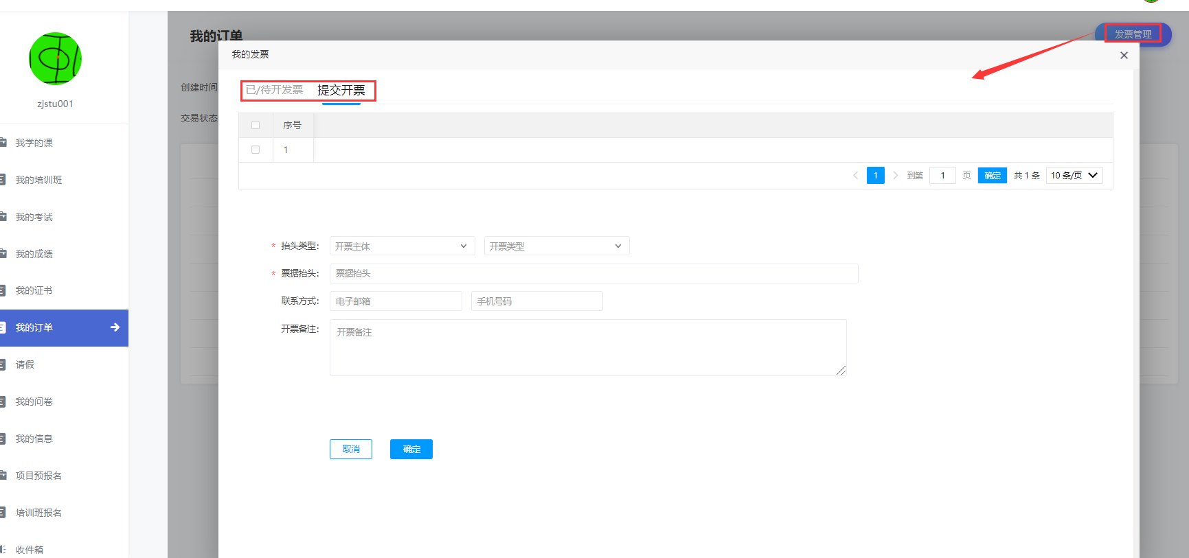 点击发票管理,可以进行发票的开具申请,以及查看已开或待发发票历史。