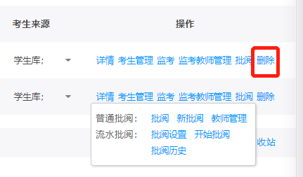 选择对应考试后的删除,以完成对对应考试的删除。