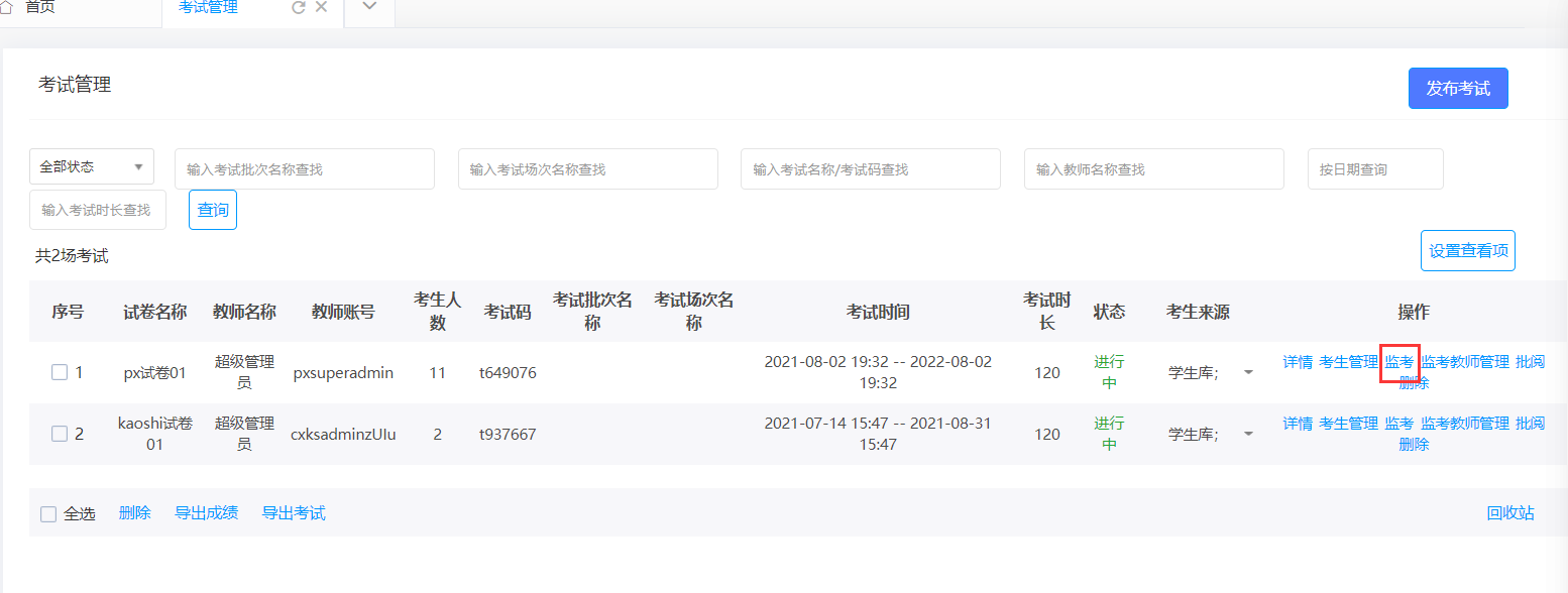 点击监考,跳转页面。