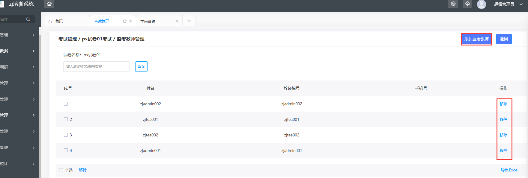 ⑤监考教师管理