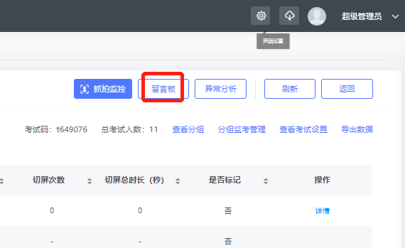 第一步:点击留言板,可查看到该考试下所有考生留言。
