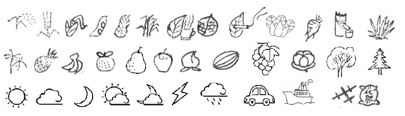作业2:提交以下形象符号及天气符号绘画练习作业(钢笔或签字笔画于A3纸上,每个符号画2次)