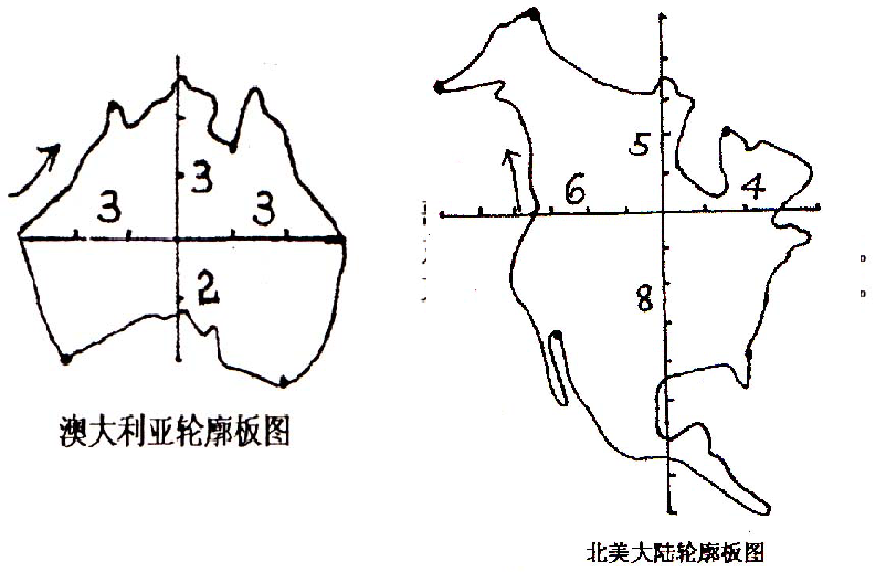 提交黑板粉笔绘制澳大利亚大陆、非洲、北美洲轮廓略图照片各一张