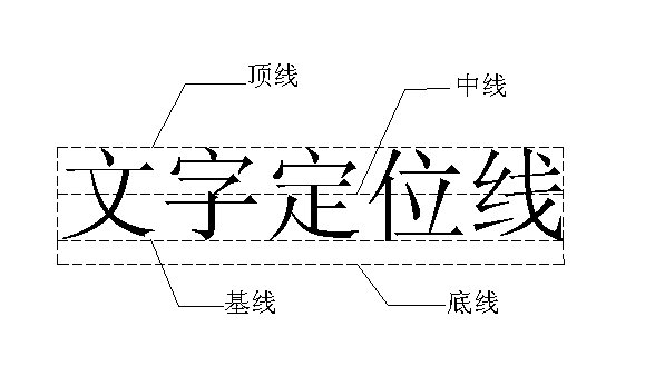 AutoCAD为文字定义了4条定位线:顶线、中线、基线、底线,以便确定文字的对齐位置。