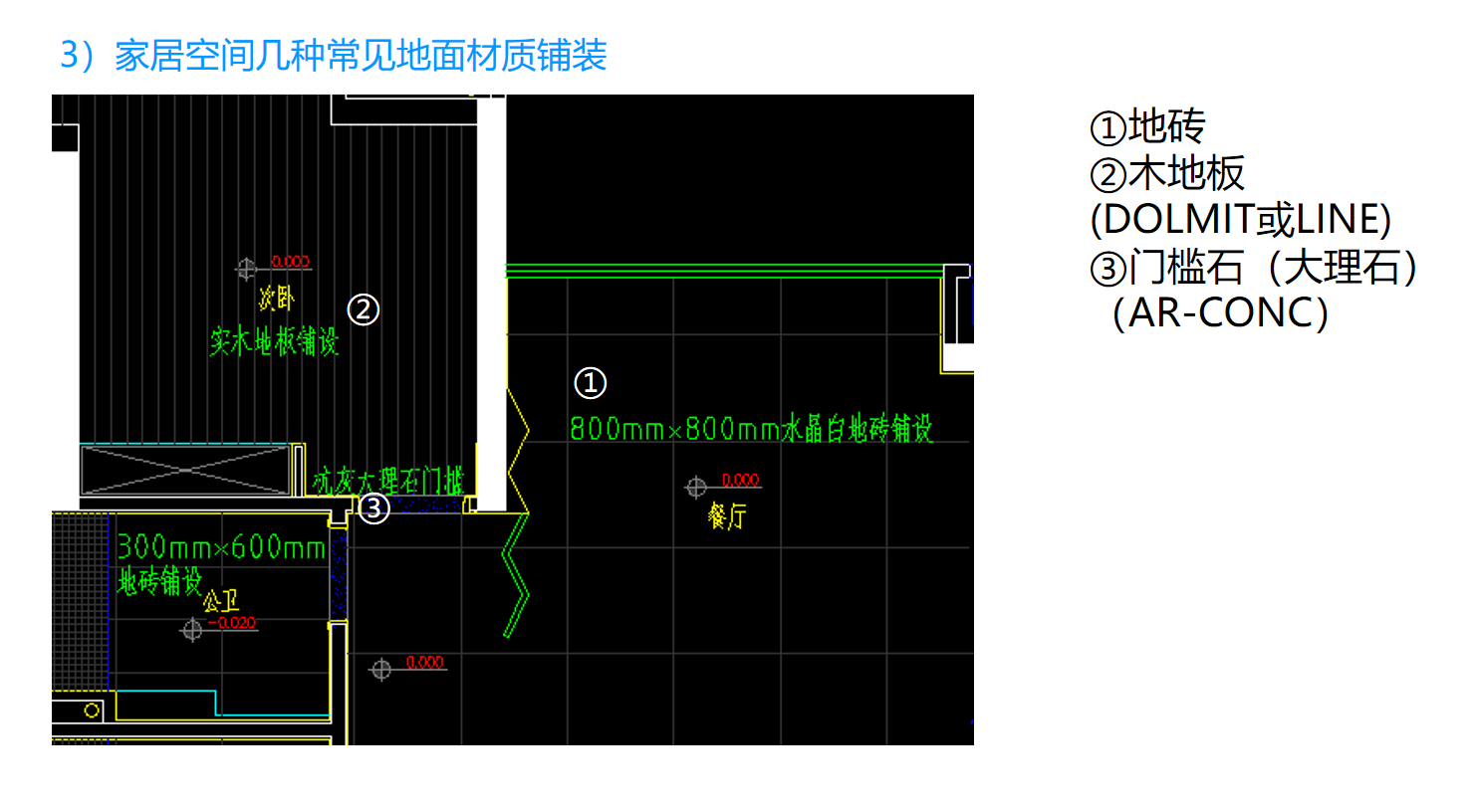 • 7.5 任务3:4室2厅铺装图材料标注