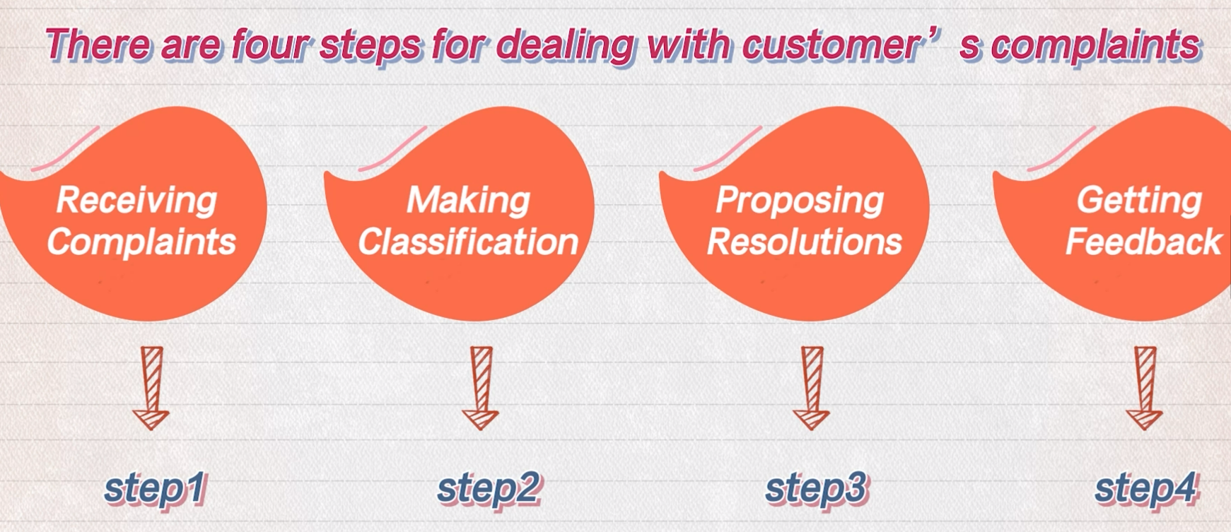 According to this video clip, what arethe steps of handling customer’s complaints?