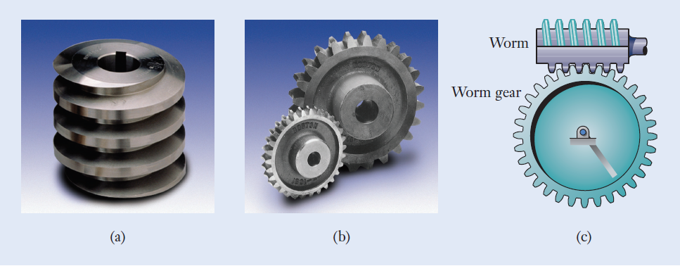 (a)Worm having one continuous tooth. (b)Worm gears.(c)Worm gearset. Reprinted with permission by Boston Gear Company.