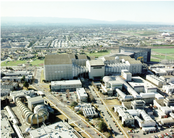 An aerial view of several wind tunnels that are used for aircraft and flight research. Courtesy of NASA.