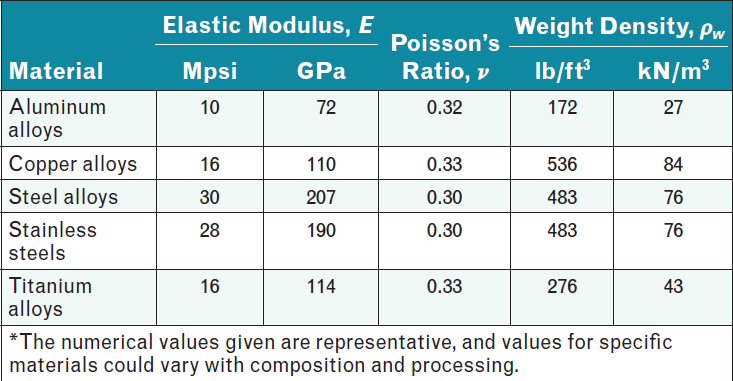Elastic Modulus and Weight Density of Selected Metals