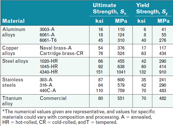 Ultimate and Yield Strengths of Selected Metals
