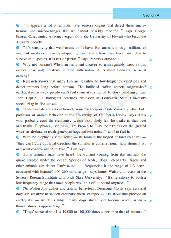 Read the passage in Section A and fill in the blanks about the paragraph numbers, like 1.2.3....