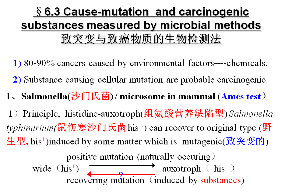 6.1 Cause-mutation and carcinogenic substances measured by microbial methods 致突变与致癌物质的生物检测法