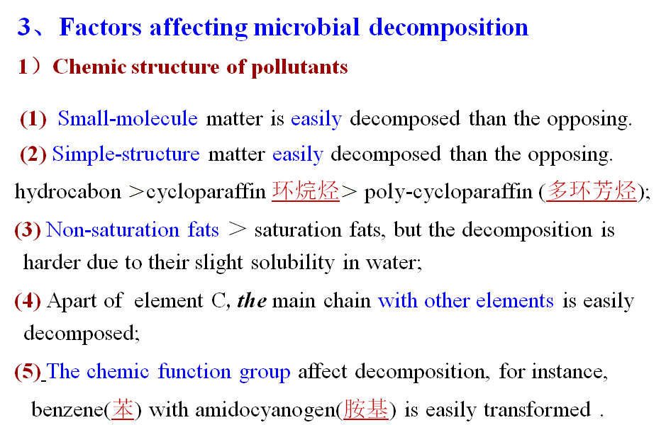 4.4 Microbial decomposition and transform of pollutants (微生物对污染物的降解与转化)