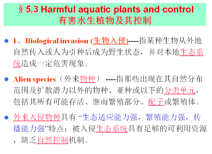 5.3 Harmful aquatic plants and control(有害水生植物及其控制)
