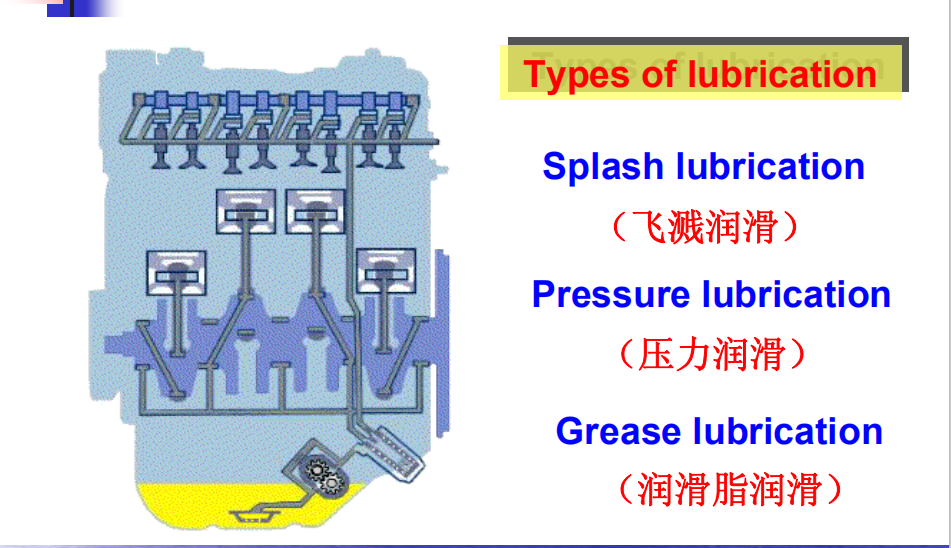 1)boundary lubrication — relies on oil being splashed up onto the surfaces ,