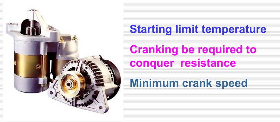 The starter must crank the engine at a specified minimum speed (starting speed) in order to generate the air-fuel mixture necessary for self-sustained operation of spark-ignition engines, even under adverse conditions, and must support the engine as it runs up to minimum self-sustained speed after initial ignition.