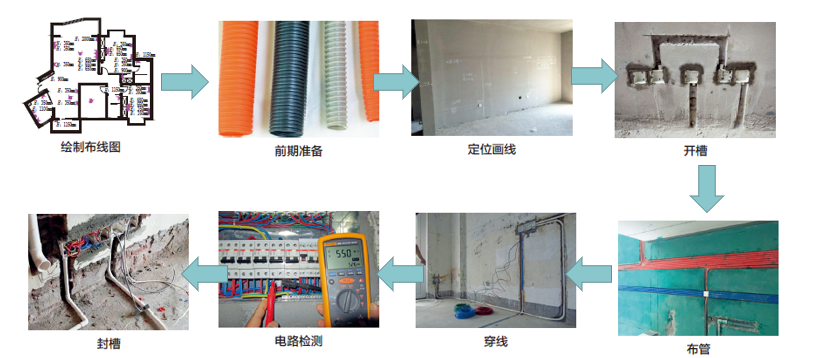 7不可在墙上或地下开槽、明敷电线之后,直接用水泥封堵,否则会给以后的故障检修带来麻烦。
