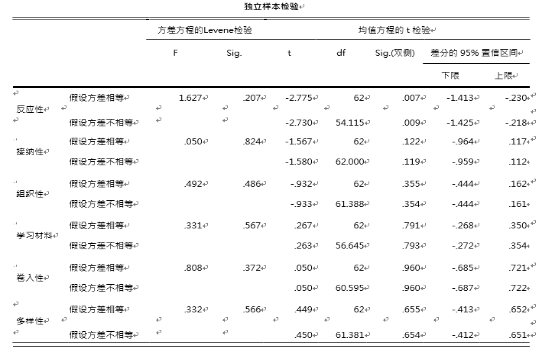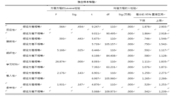 表4-10 独立样本检验表