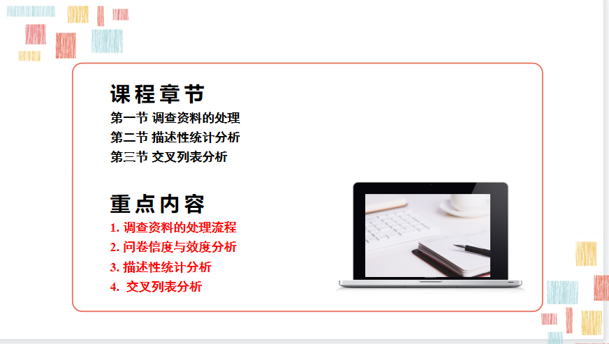 本章将介绍调查资料的审核、编码与录入等数据处理与基础分析的基本方法。
