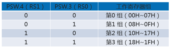 ④ RS1、RS0:工作寄存器组选择位