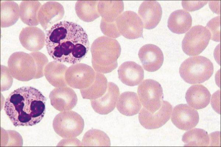 中性粒细胞光镜像(Wright-Giemsa,10×40):