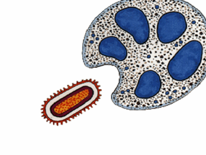 3.中性粒细胞吞噬细菌后,自身也死亡,成为脓细胞。