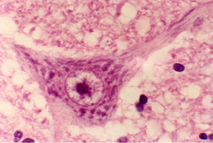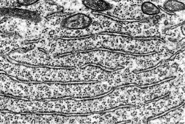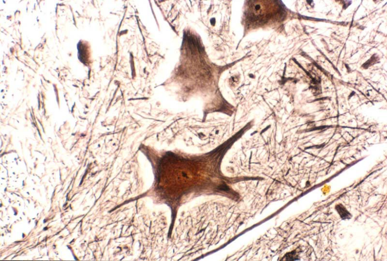 ● 光镜结构:在镀银染色切片中,呈棕黑色细丝,交错排列成网,并伸入树突和轴突。