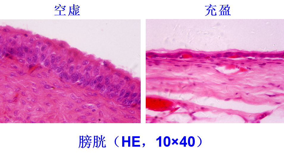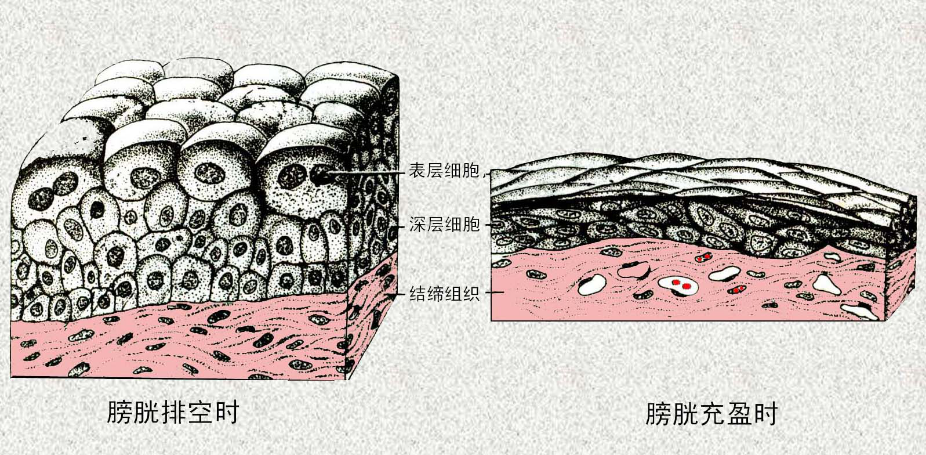 细胞形状和层数随所在器官的空虚和扩张状态而变化。