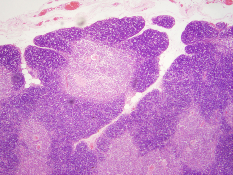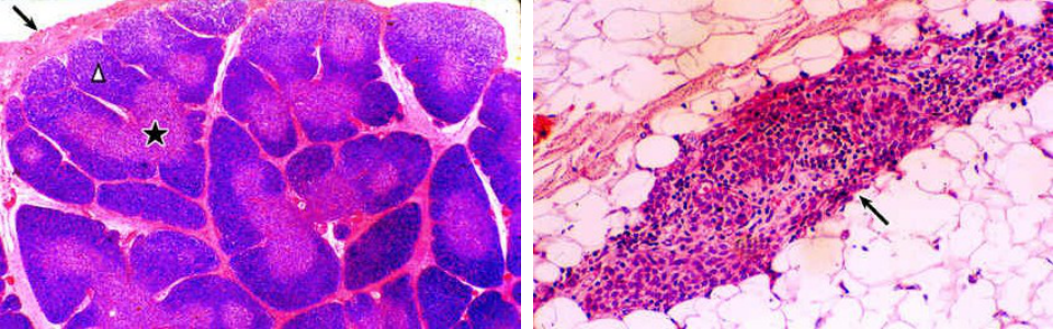 血-胸腺屏障结构模式图: 胸腺小体光镜像: