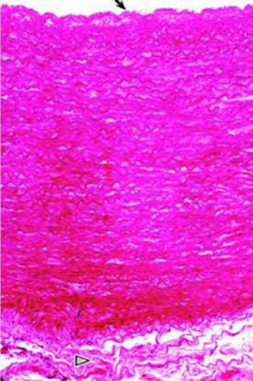 ● 血管的平滑肌细胞在动脉发育过程中,可分泌多种蛋白质,形成各种细胞外基质。