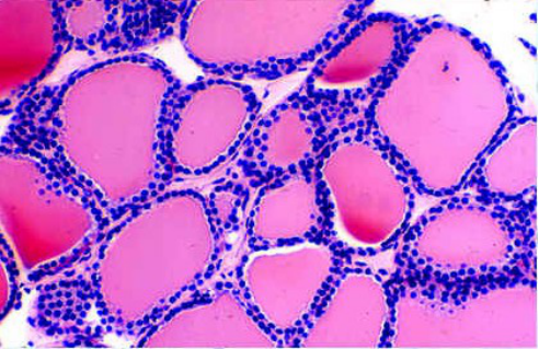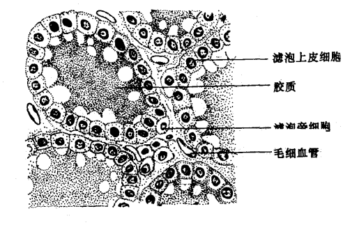 ● 每个小叶内约有20-40个甲状腺滤泡和许多滤泡旁细胞。