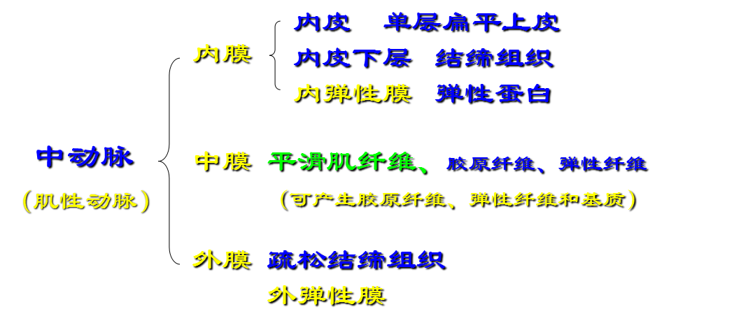 中动脉(右)、中静脉(左)结构模式图: