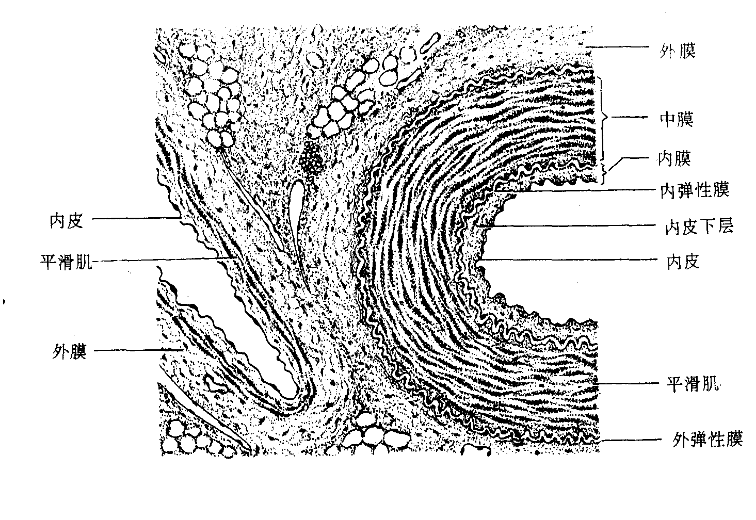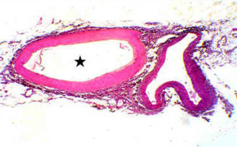 中动脉(左)、中静脉(右)光镜像: