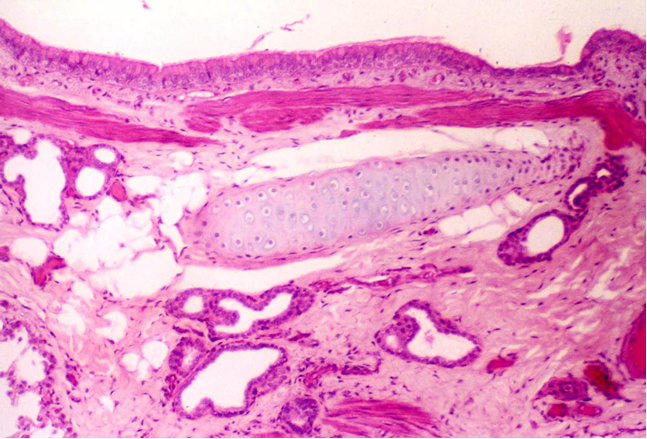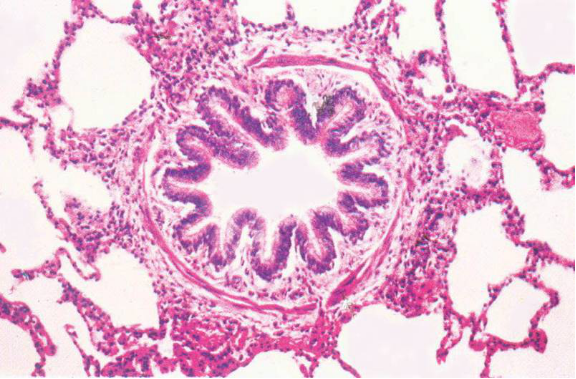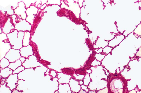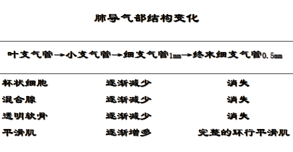 ● 从叶支气管至终末细支气管为肺的导气部。包括叶支气管、段支气管、小支气管、细支气管和终末细支气管。