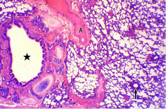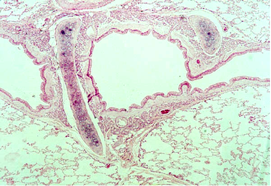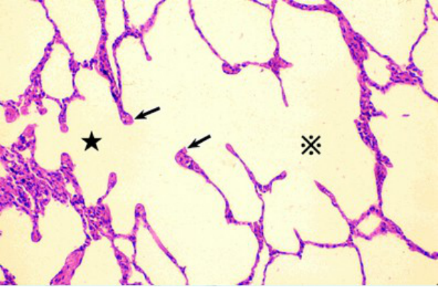 肺泡管(alveolar duct) :可见结节状膨大(隔膨大)