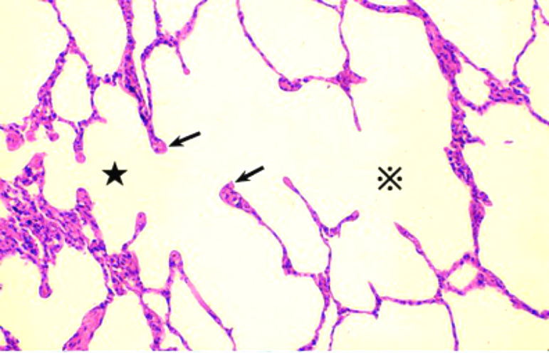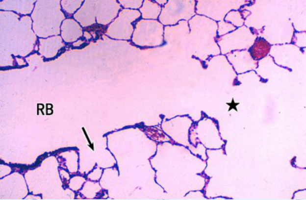 肺泡囊(alveolar sac) :无结节状膨大(隔膨大)