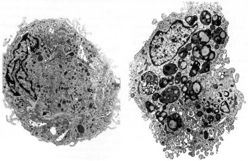 肺巨噬细胞电镜图(左:不吸烟者 右:吸烟者)