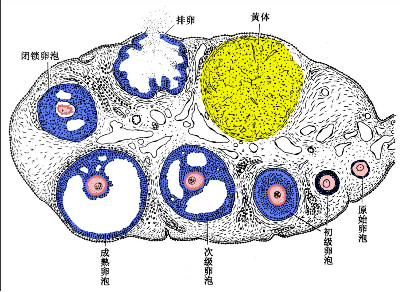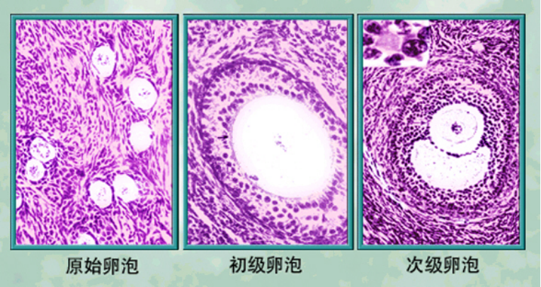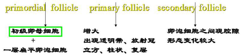原始卵泡→初级卵泡→次级卵泡→成熟卵泡