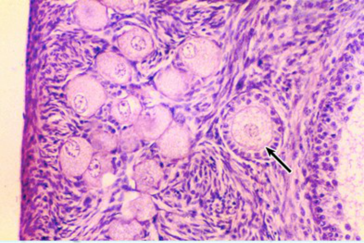 原始卵泡和初级卵泡(猫卵巢) 原始卵泡