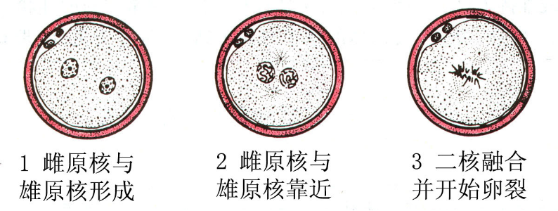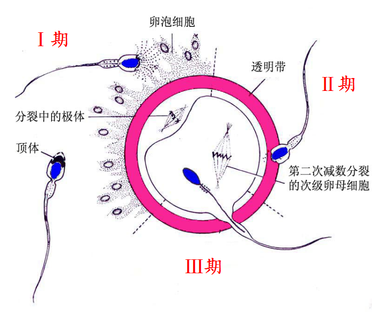 ● 透明带反应:卵子释放皮质颗粒酶,使透明带变性,确保单精受精。