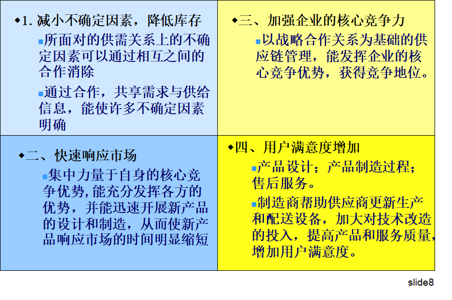 5、建立供应链合作伙伴关系的意义: