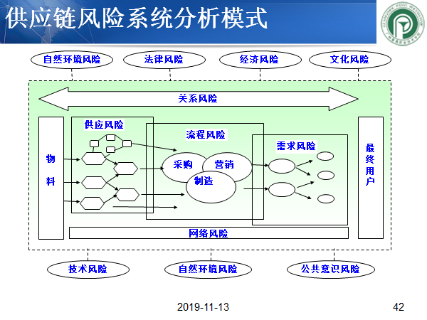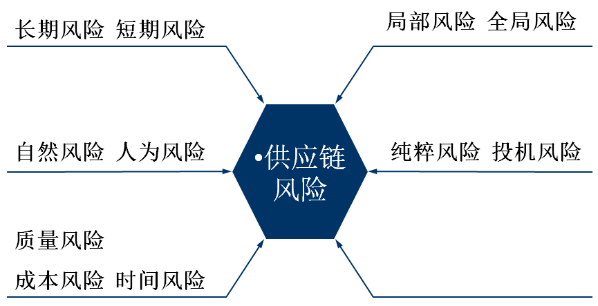 •供应链风险可以定义为:由供应链内、外部环境中存在的不确定性因素所导致的造成供应链崩溃或运营障碍的可能性。
