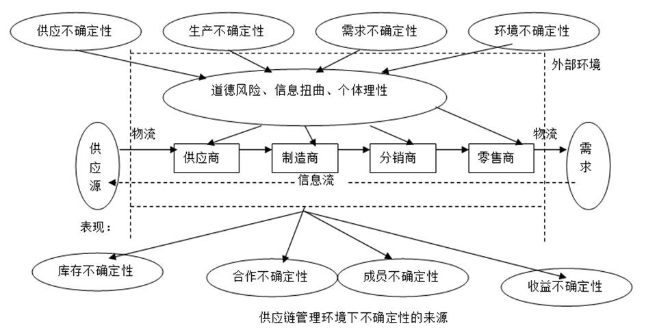 2)由于供应链网络上的企业之间是相互依赖的,任何一个企业出现问题都有可能波及和影响其他企业,影响整个供应链的正常运作,甚至导致供应链的破裂和失败。