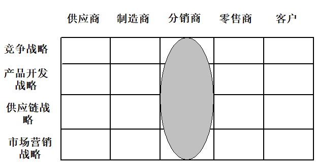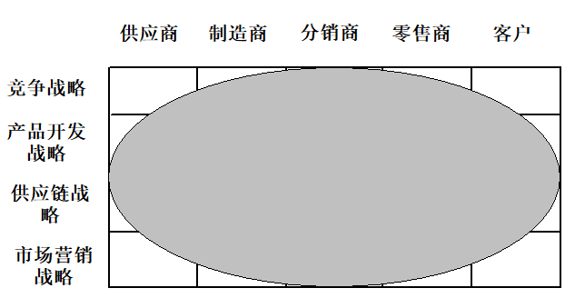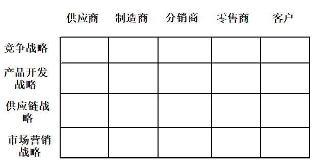 纵向拓展:战略匹配范围包括了相互协调的不同职能战略-竞争战略、产品开发战略、供应链战略、市场营销战略