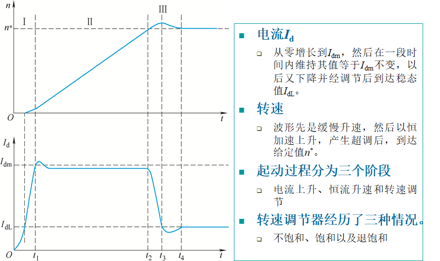 2 能够描述双闭环直流调速系统的动态过程,比如起动和制动过程中的转速、电流变化情况
