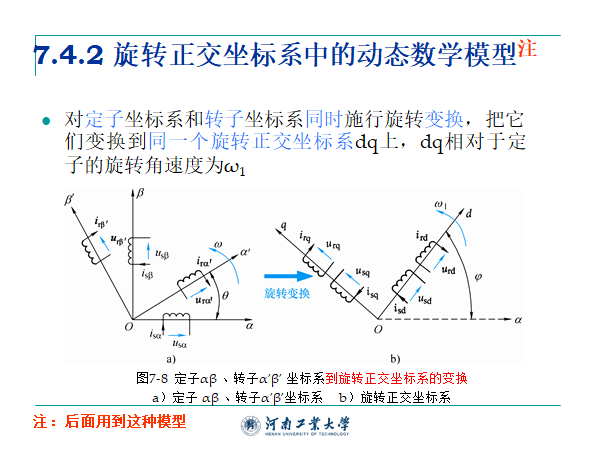 3、7.4.2节再进行旋转正交坐标系的变换,得到旋转正交坐标系中的动态数学模型。