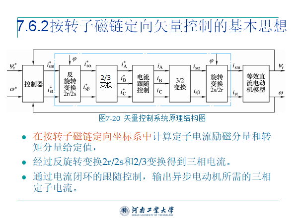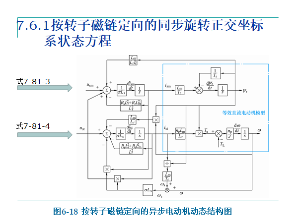 1、按照转子磁链定向,分析同步旋转正交坐标系下的状态方程,得到等效直流电动机模型