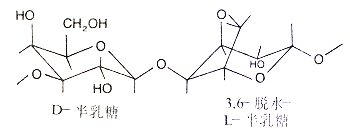 –琼脂糖是由琼脂中提取出来的,D-半乳糖和3、6-脱水-L-半乳糖结合的链状多糖。