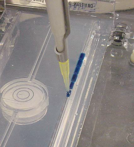 –注意加样枪的枪头不可插入过深,以免刺穿凝胶,导致样品外溢。