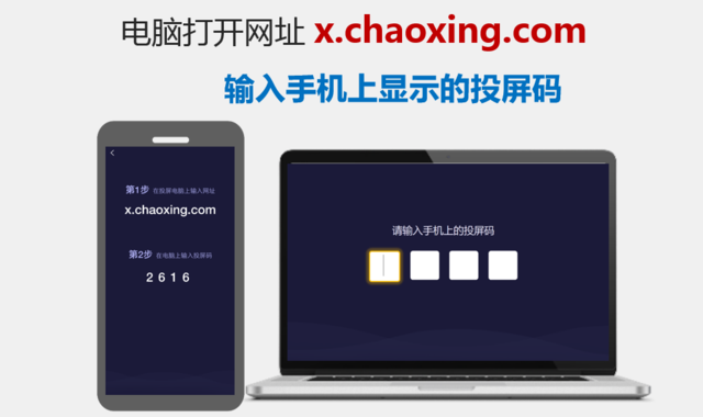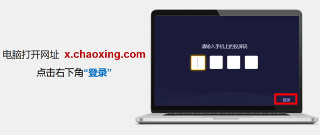 2.根据页面提示,在投屏电脑上输入网址:x.chaoxing.com ;